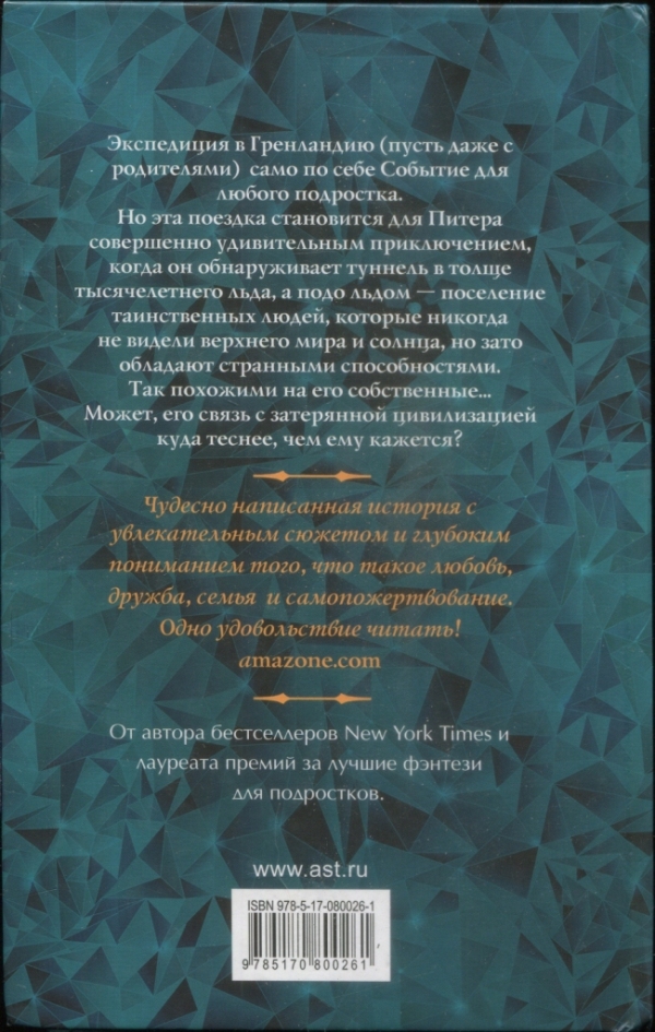 Экспедиция в Гренландию (пусть даже с родителями) — само по себе Событие для любого подростка. Но эта поездка становится для Питера совершенно удивительным приключением, когда он обнаруживает туннель в толще тысячелетнего льда, а подо льдом поселение таинственных людей, которые никогда не видели верхнего мира и солнца, но зато обладают странными способностями, так похожими на его собственные. Может, его связь с затерянной цивилизацией куда теснее, чем ему кажется?