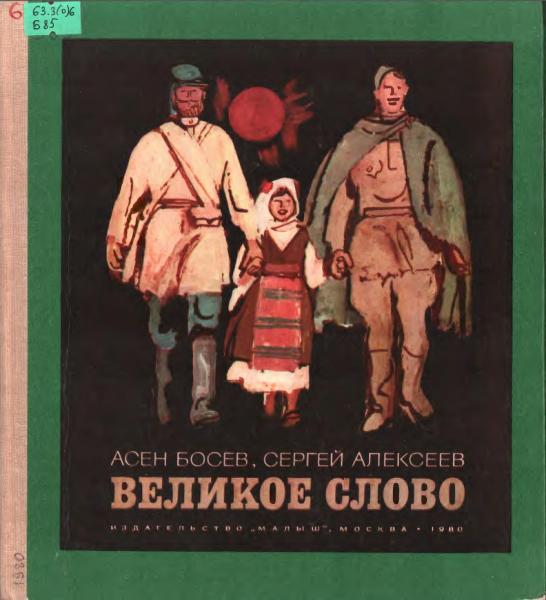 Долгие годы Болгария находилась под игом турецких захватчиков. Не раз поднимались болгары на борьбу за свою независимость. Но силы были неравными. В 1877 году на помощь болгарскому народу пришли русские войска. Об эпизодах борьбы за независимость Болгарии и рассказывает эта книга. Написали её два автора - болгарский писатель Асен Босев и русский - Сергей Алексеев. [collapse collapsed title=]Босев Асен, Алексеев Сергей. Два Антона: Рассказы. Для младшего школьного возраста / А. Босев, С. П. Алексеев; Рис. М. Петрова. - Москва: Издательство «Малыш», 1973. - 40 с.: ил. Содержание: Братушки Два Антона Петя-Владко-Петерчо Никола Нанов Вот так народ собрался! Кувшин Память[/collapse]