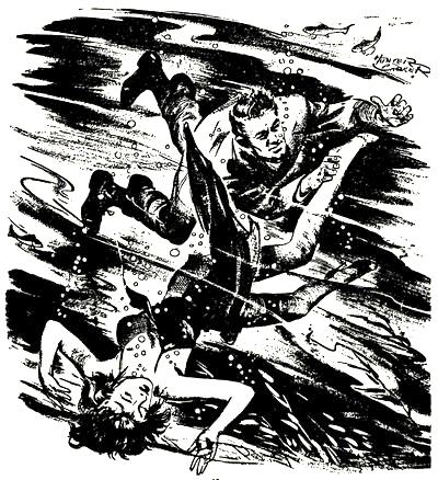 On the pier, behind a stack of whisky cases, lay the corpse, a steel box-hook buried in his skull, and aboard Lt. Koski’s police boat was the sexy number who knew the answers — too many of them!