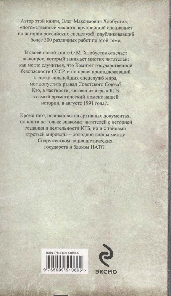 Автор этой книги Олег Максимович Хлобустов — «потомственный чекист», крупнейший специалист по истории российских спецслужб, опубликовавший более 300 различных работ по этой теме. В своей новой книге О. М. Хлобустов отвечает на вопрос, который занимает многих читателей, — как могло случиться, что Комитет государственной безопасности СССР, по праву принадлежавший к числу сильнейших спецслужб мира, мог допустить развал Советского Союза? Кто, в частности, «вывел из игры» КГБ в самый драматический момент нашей истории, в августе 1991 года?.. Кроме того, основанная на архивных документах, эта книга знакомит читателей не только с историей создания и деятельности КГБ, но и с тайнами...